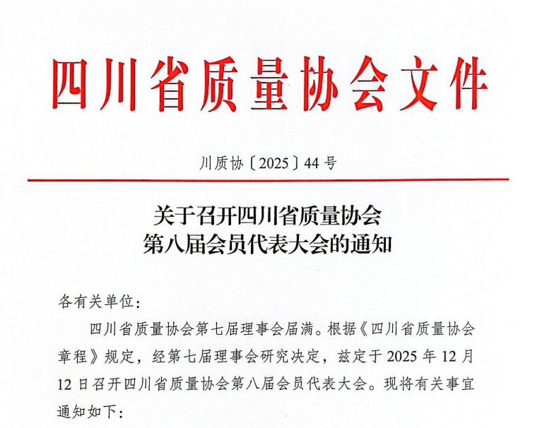 关于召开四川省质量协会 第八届会员代表大会的通知