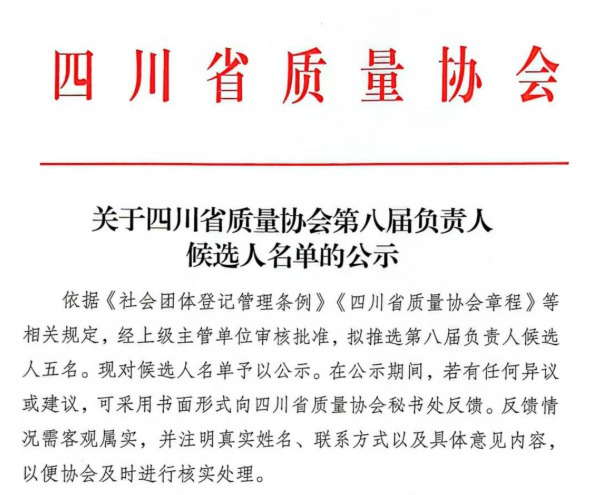 关于四川省质量协会第八届负责人 候选人名单的公示